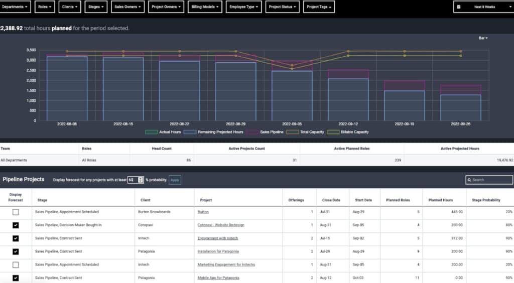 Build more rigor into the sales and resource planning process: Data from CRM platforms, or resource and staffing plans, often exists in silos. A consequence of this locked-up data is that sales teams seldom have visibility into the project backlog which impacts when and how the work they’re selling can be delivered. Delivery teams, on the other hand, lack visibility into the sales pipeline and struggle to balance workloads and make data-driven staffing decisions.